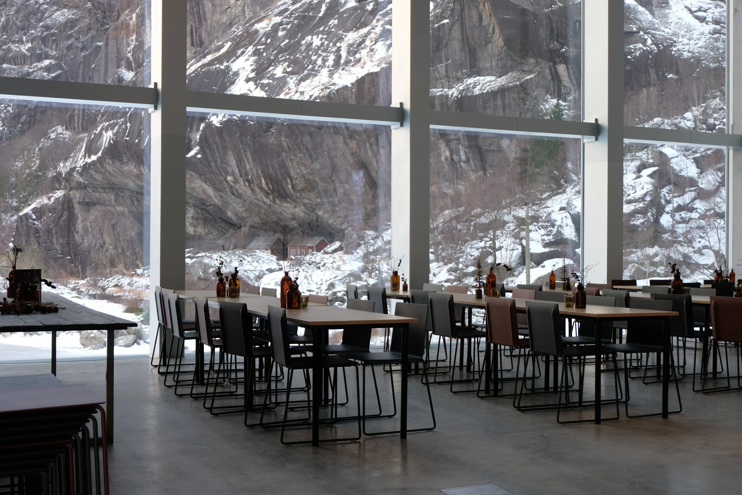 You stay at Logbua where there is the possibility of a private chef. Jøssingfjord Science Museum, only 10 minutes drive from Logbua. Here you can rent an auditorium for a reasonable price, or a room where you can have your team building meeting. Fantastic cafe Dråben with the best view. Here you can have a coffee meeting and lunch. We can recommend you to book a complete package from the chef Edvard, tour of the museum, room for team building with fruit etc., lunch in the cafe.
