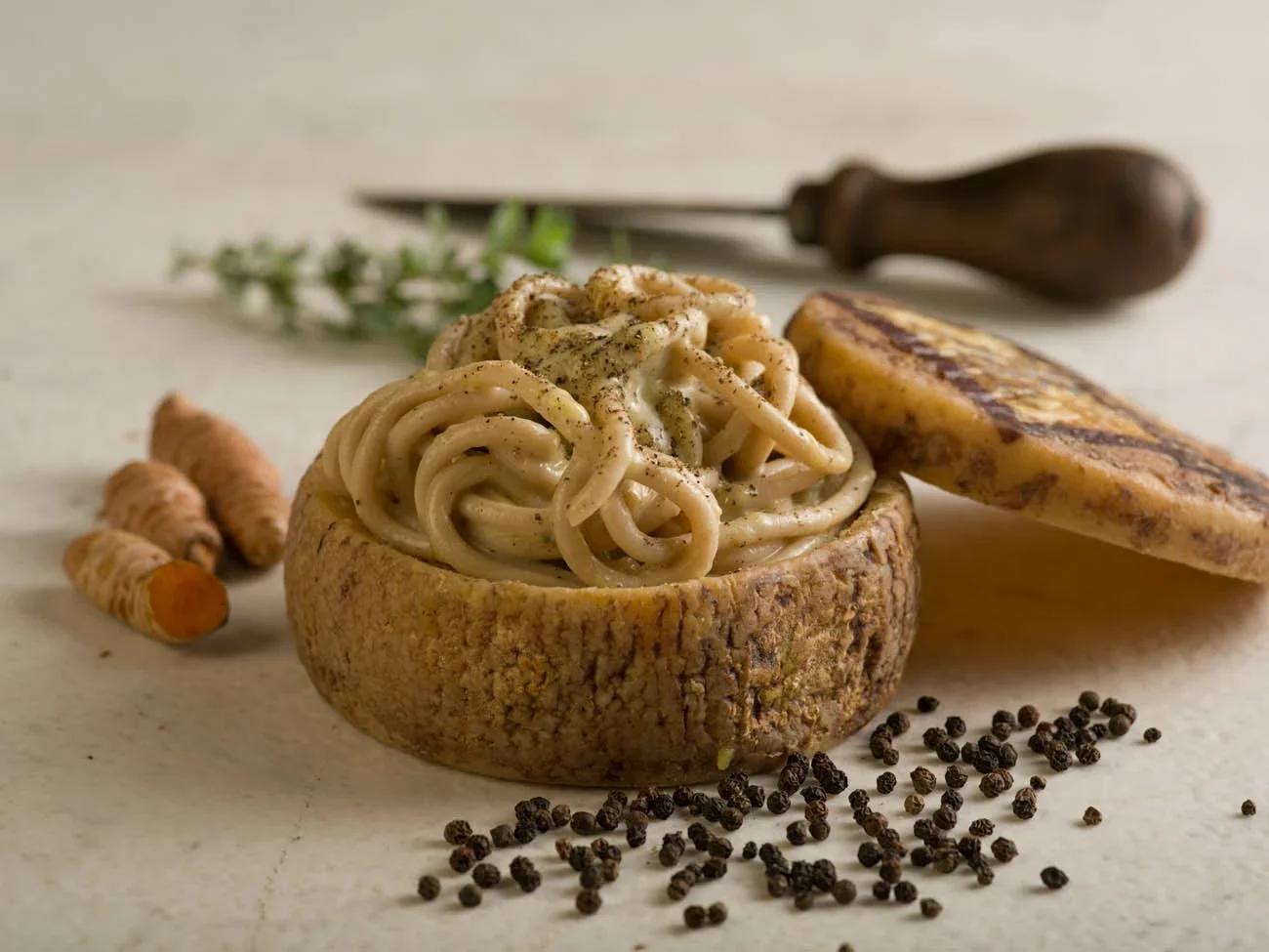 The cacio e pepe dish itself is a classic Roman recipe with just three ingredients: pasta, Pecorino Romano cheese, and black pepper.